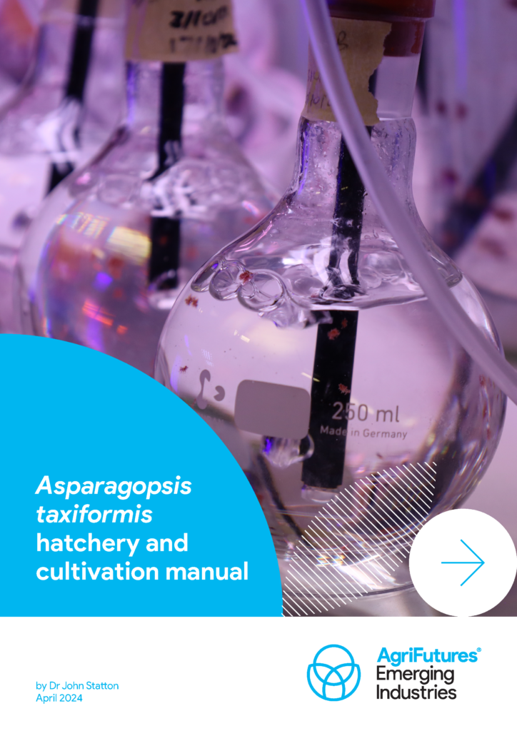 Understanding the potential the seaweed industry holds and the need for agriculture to reduce its emissions in line with Australian Government targets, AgriFutures Australia invested in the development of this hatchery and cultivation manual, aimed at people interested in exploring the production of Asparagopsis taxiformis.