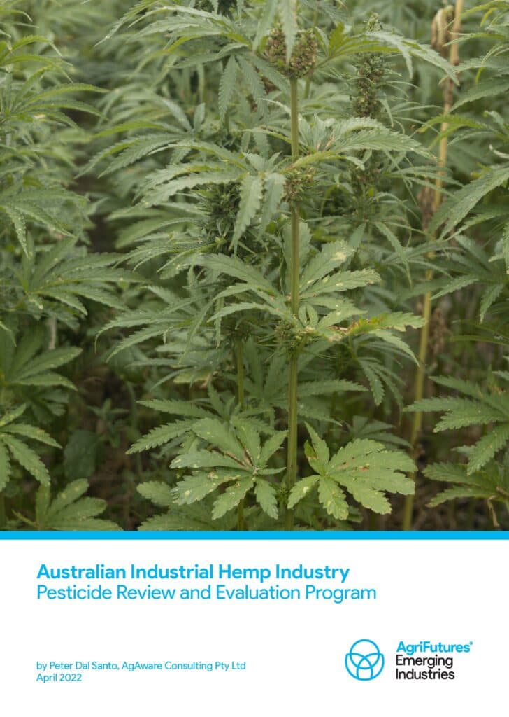 Australian industrial hemp (Cannabis sativa) is largely grown for seed (cereals, baking, health bars), seed for oil and fibre (textiles, paper, rope, fuel), and herd for building products. Seed production accounts for 95% of all hemp crops. In 2020, there were about 2,000 ha of hemp crops in Australia, yielding 2,000 t per annum for grain and 100 t for fibre. As this is an emerging crop, the time is ripe to identify crop protection options that could have a significant impact on the Australian industry and support growth potential.