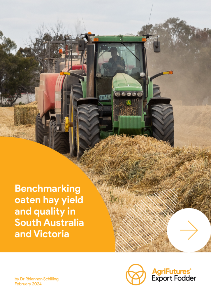 A key priority of the AgriFutures Export Fodder Program Strategic RD&E Plan (2021-2026) is to invest in the understanding and application of agronomy best management practices that deliver increased yield and/or quality. As part of a one-year study using field trial sites at Tarlee and Hart in South Australia, and Nullawil in Victoria, researchers investigated how the latest oaten hay varieties perform across different environments. The team also studied changes in oaten hay quality traits across two growth stages, and the influence of sampling techniques on hay quality outcomes measured from field trial plots.