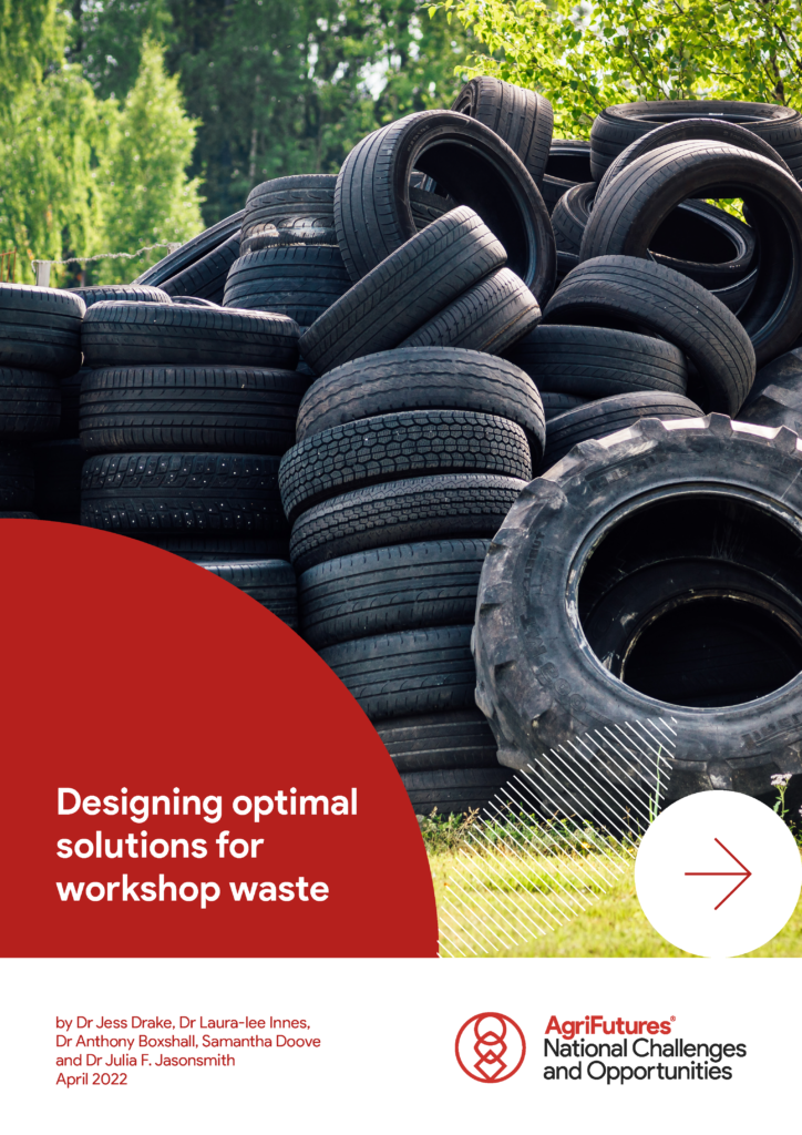 This report, produced by Murrang Earth Sciences, focuses on understanding the issues stakeholders have in managing workshop waste and how to improve its management. Difficult-to-manage workshop wastes include oil, chemicals and their containers, batteries, metal, broken tools, and machinery. The research found there are workshop waste management opportunities and relevant product stewardship schemes already occurring in Australia, and these have viable potential to be utilised by agriculture, fisheries and forestry stakeholders.
