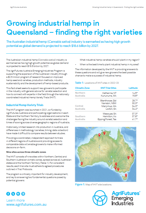 Fact sheet: Growing industrial hemp in Queensland