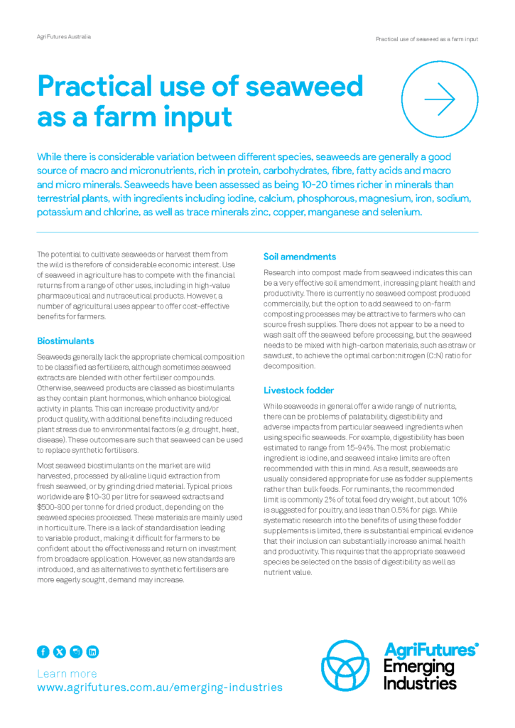 The potential to cultivate seaweeds or harvest them from the wild is therefore of considerable economic interest. Use of seaweed in agriculture has to compete with the financial returns from a range of other uses, including in high-value pharmaceutical and nutraceutical products. However, a number of agricultural uses appear to offer cost-effective benefits for farmers.