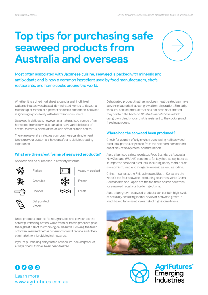 Whether it is a dried nori sheet around a sushi roll, fresh wakame in a seaweed salad, de-hydrated kombu to flavour a miso soup or ramen or a powder added to smoothies, seaweed is growing in popularity with Australian consumers.
