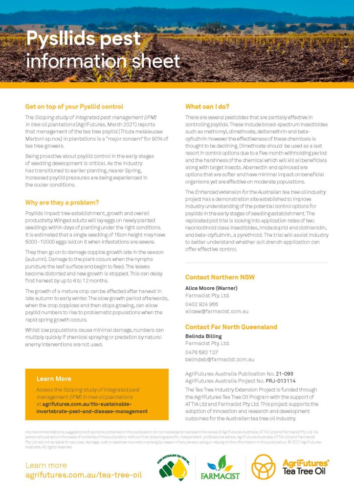 Project Summary: Scoping study of Integrated Pest Management (IPM) in tea tree oil plantations