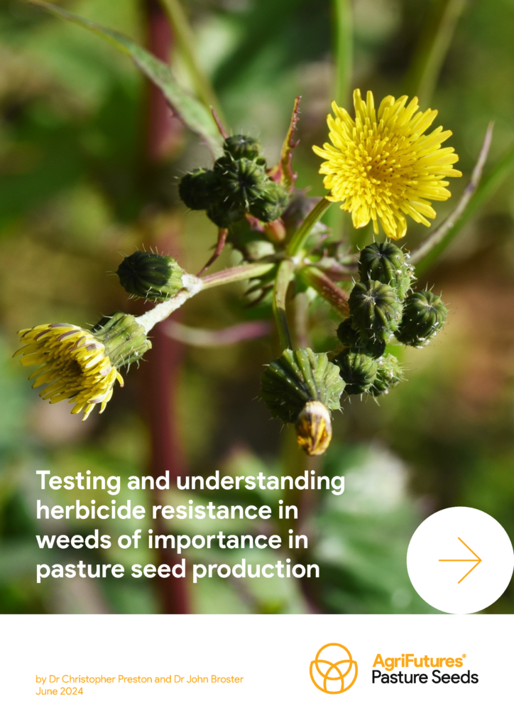 Given its status as a high-value crop, clover seed production fields are actively managed using intensive herbicide pressure to control the emergence of weeds, such as annual ryegrass, common sowthistle and capeweed. As there are few herbicide modes of action available to growers, there is a high risk of herbicide resistance in clover seed.