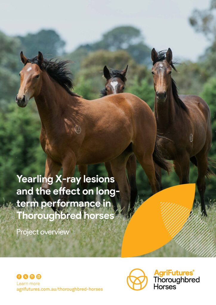 DownloadRadiography is a key part of stakeholder decision-making when buying, selling and managing Thoroughbred yearlings. In Australia, a standard set of radiographs obtained within 42 days of sale must be provided with each yearling presented at the major yearling sales. For purchasers, this information — along with airway endoscopy and physical examination — help determine the level of risk associated with each horse. For vendors, the knowledge obtained can help with presale management and expectations around sale performance of Thoroughbred yearlings.