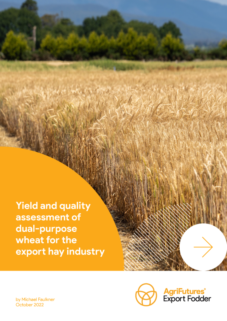 The Australian fodder industry makes a fundamental contribution to the Australian economy, with an estimated value of $1.75 billion at farm gate. Wheat and barley have potential as dual-purpose cereal varieties to be utilised for either hay or grain production, and can assist both farmers and exporters to increase their options and reduce risks.